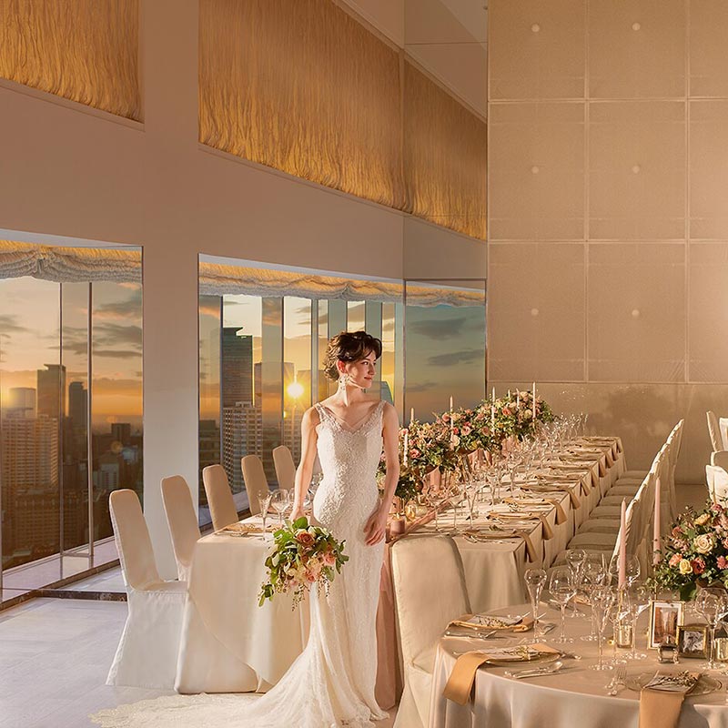 最大480名の格式高いボールルームから地上200mを超えるスカイバンケットまで多彩な披露宴会場を誇ります。