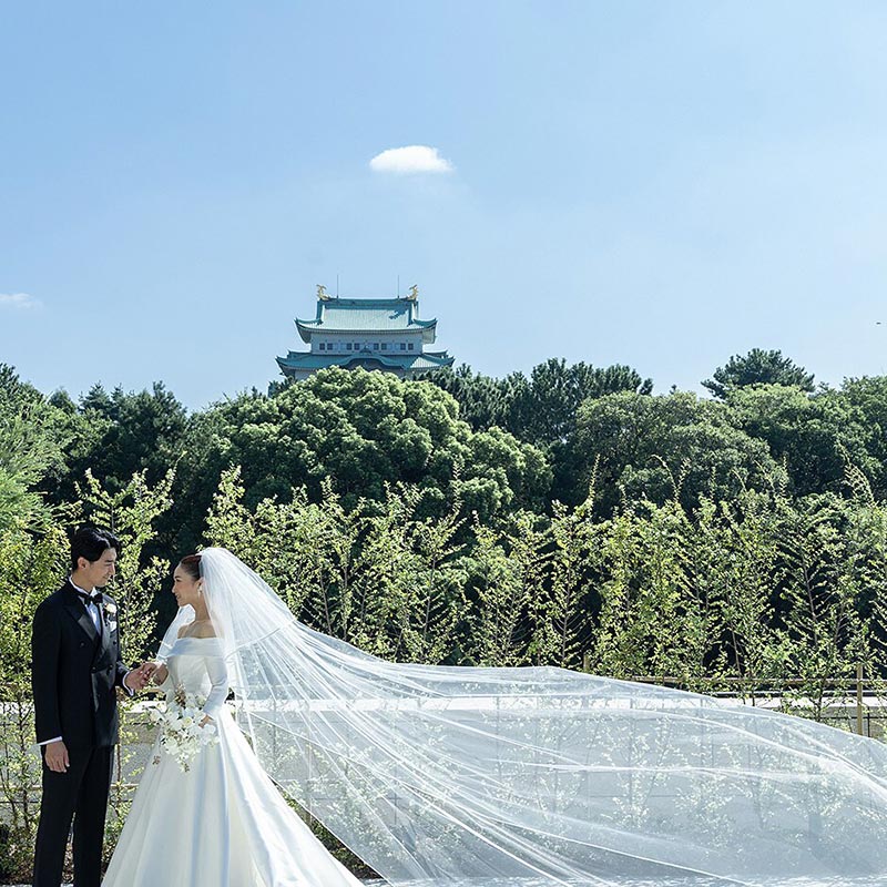 「名古屋城を背景に、国内最高峰のブランドと料理でゲストをもてなしたい」そんな、妥協なき高級感を求めるカップルに、自信を持っておすすめしたい高級式場です。