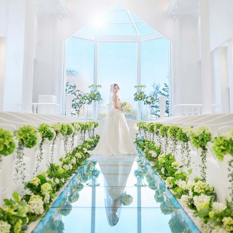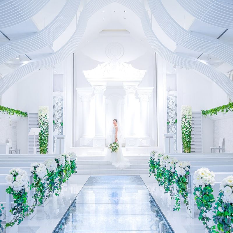 ガラスのバージンロードが印象的な純白のチャペルでは、挙式スタイルに応じた演出調整も可能で、厳かさと華やかさを両立できます。