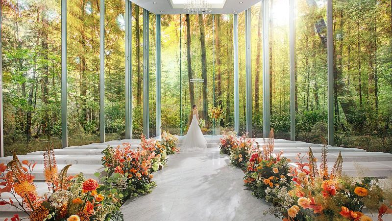 「アネーリ軽井沢」は、全面ガラス張りのチャペルに心をつかまれる花嫁多数の人気結婚式場です。