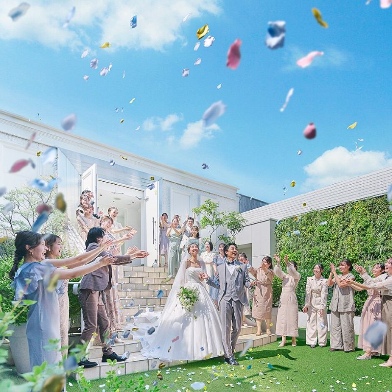 新横浜駅徒歩2分の立地に加え、全天候型の貸切邸宅やガーデン、大階段入場など、演出面も一通りそろっているのが安心材料。