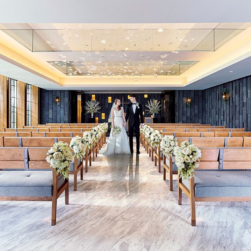 挙式スタイルは、壮麗な大聖堂をイメージさせるヨーロピアンチャペル、モダンクラシックなチャペル、そして日本で初めてホテル内に神殿を分祀した伝統の神殿式と、3つのスタイルから選択可能。どのスタイルを選んでも、ゲストが思わず息をのむ荘厳な空間が広がります。